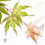 DescriptionFeuillage jaune vert nervuré vert au printemps, en été le limbe devient blanc aux nervures vertes, en automne rouge orangé feu.